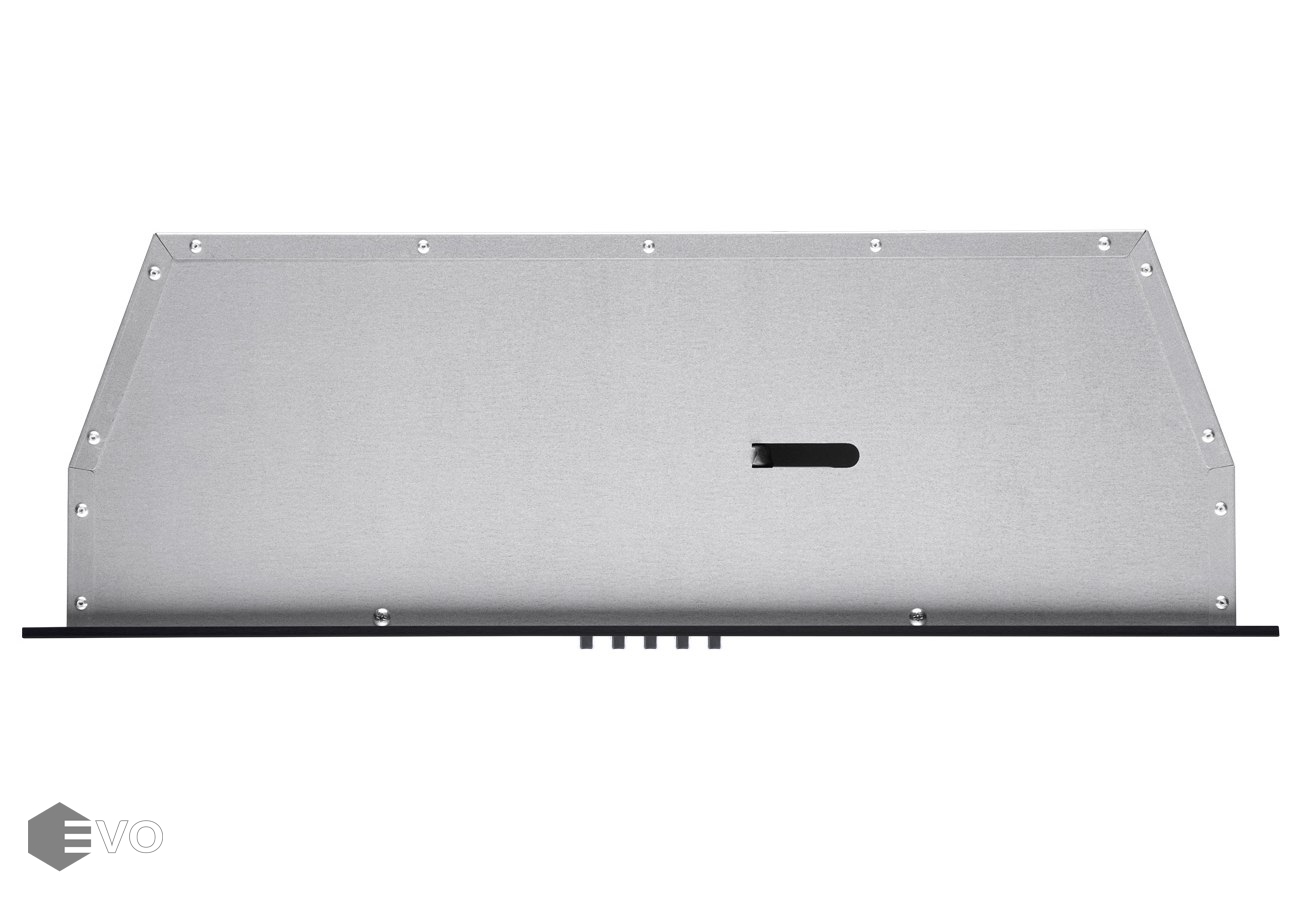 Вытяжка выполнена полностью из матированной нержавеющей стали. На фронтальной панели находится съемный многослойный жироулавливающий фильтр из алюминия. Кнопочное управление дает возможность выбрать одну из 3-х скоростей вентилятора и включить освещение.