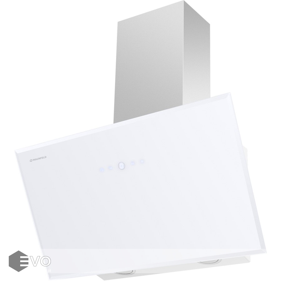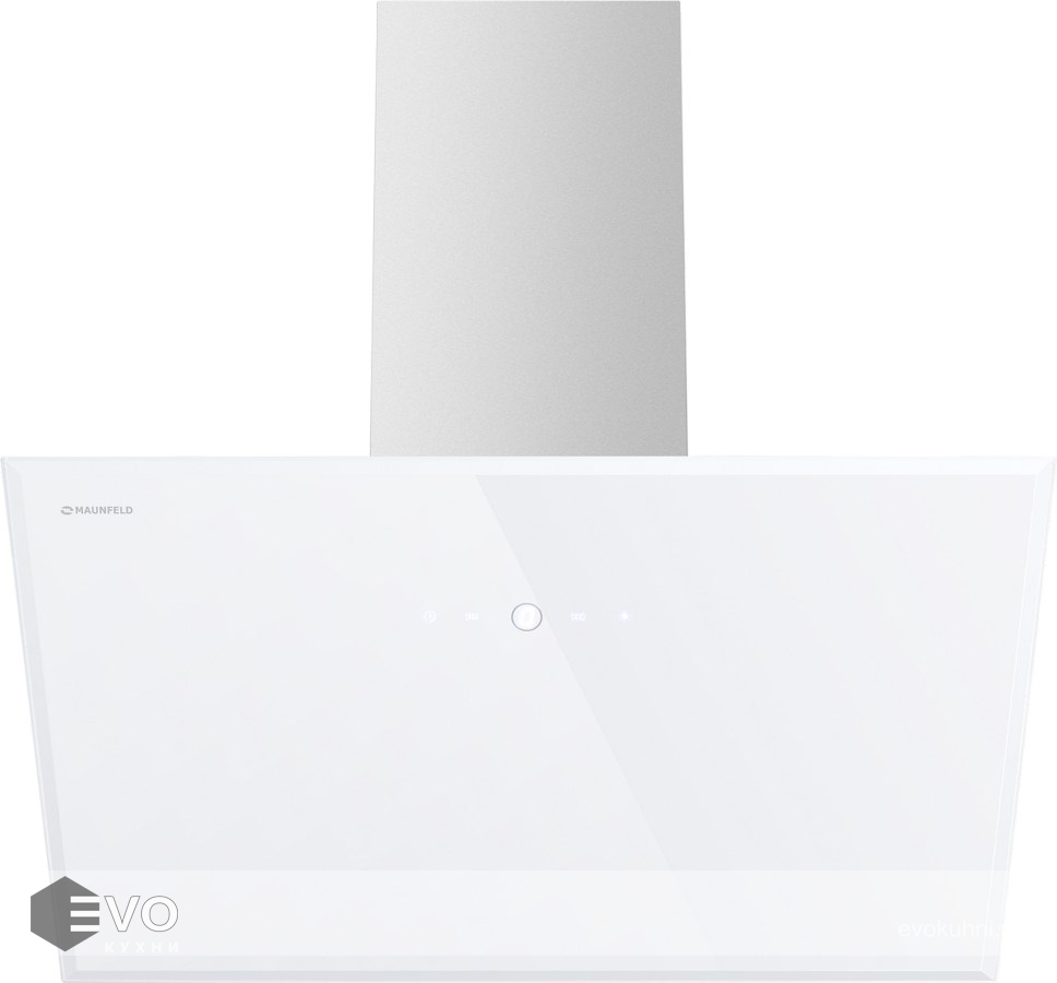 Наклонная вытяжка MAUNFELD Topaz 60 белый – вытяжка шириной 60 см, прекрасный выбор для кухни (до 20 кв.м), монтируется на стену над поверхностью плиты и может работать в двух режимах: отвода (при подключении к системе вентиляции) и рециркуляции (при использовании сменного угольного фильтра). Сенсорное управление с дисплеем расположено на фасаде. Можно включить: одну из 3-х скоростей – две основные и одна экстренную (для быстрого очищения воздуха), таймер (на 9 мин), свет (2 светодиодных элемента по 1,5 Вт).