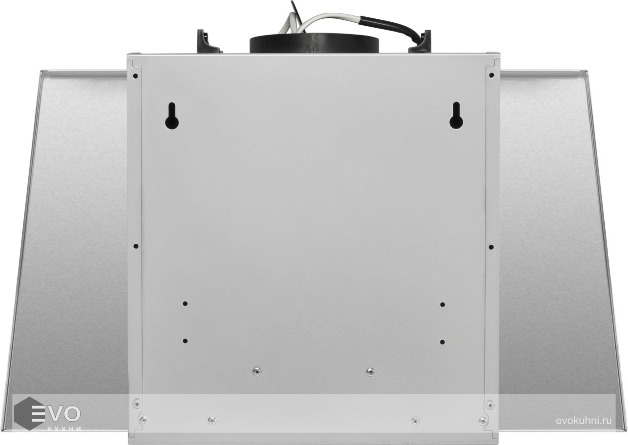 Корпус выполнен из нержавеющей стали. Откидная панель из глянцевого закаленного стекла скрывает многослойный алюминиевый жироулавливающий фильтр, который легко снимается и полностью разбирается для чистки. Загрязненный воздух втягивается по периметру откидной панели.