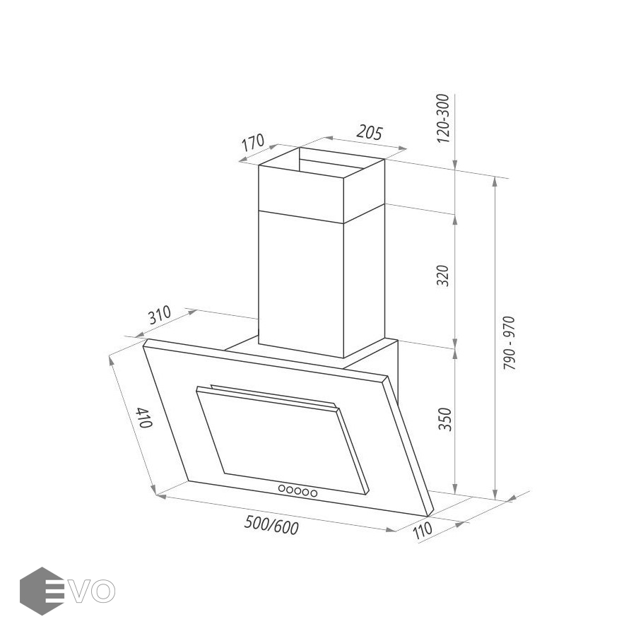 Корпус выполнен из нержавеющей стали. Откидная панель из глянцевого закаленного стекла скрывает многослойный алюминиевый жироулавливающий фильтр, который легко снимается и полностью разбирается для чистки. Загрязненный воздух втягивается по периметру откидной панели.
