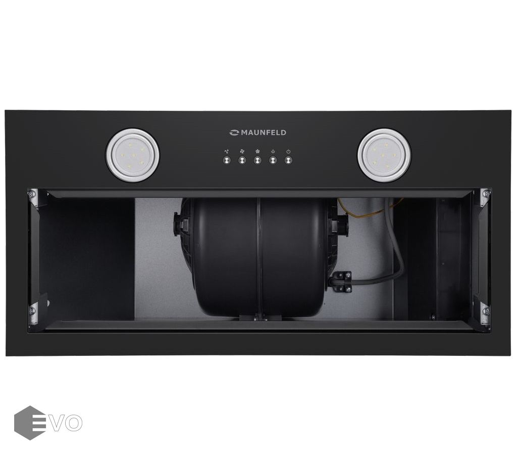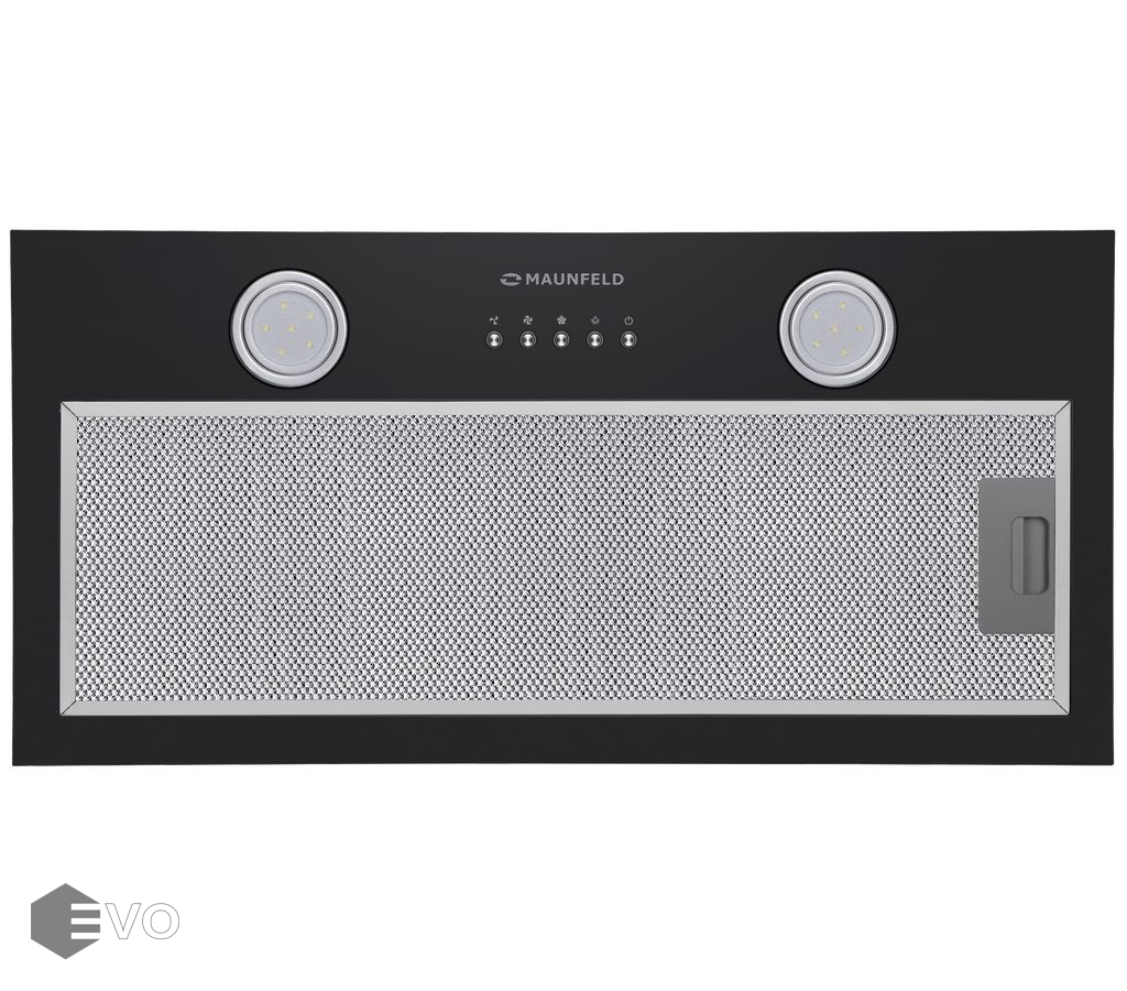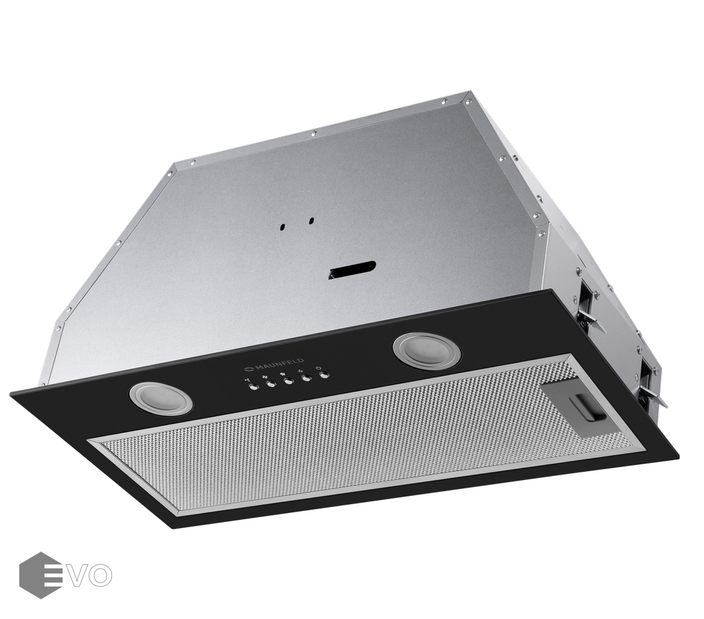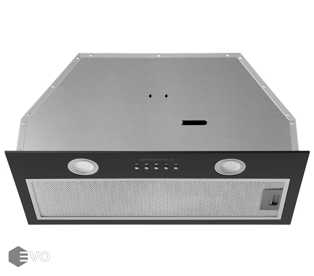 Полновстраиваемая вытяжка MAUNFELD TRAPEZE 602M черный – встраиваемая кухонная вытяжка шириной 60 см, подойдет для кухни площади до 40 кв.м. Модель монтируется в навесной шкаф над поверхностью плиты. Работает в двух режимах – отвода (при подключении к системе вентиляции) и рециркуляции (при использовании сменного угольного фильтра). Пульт дистанционного управления идет в комплекте.
