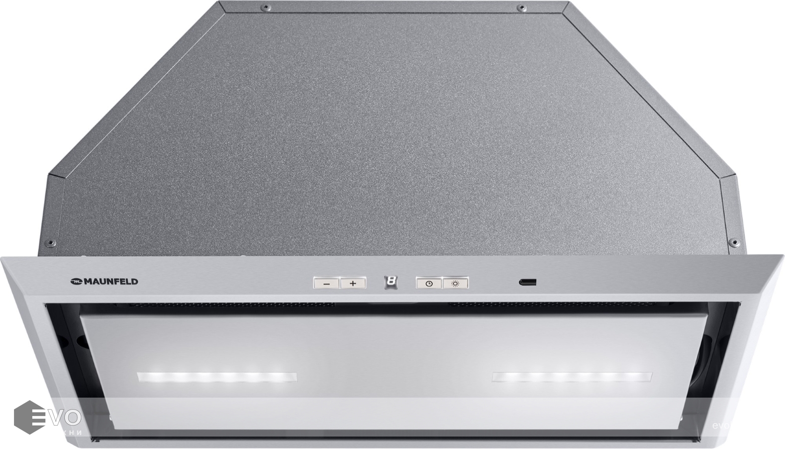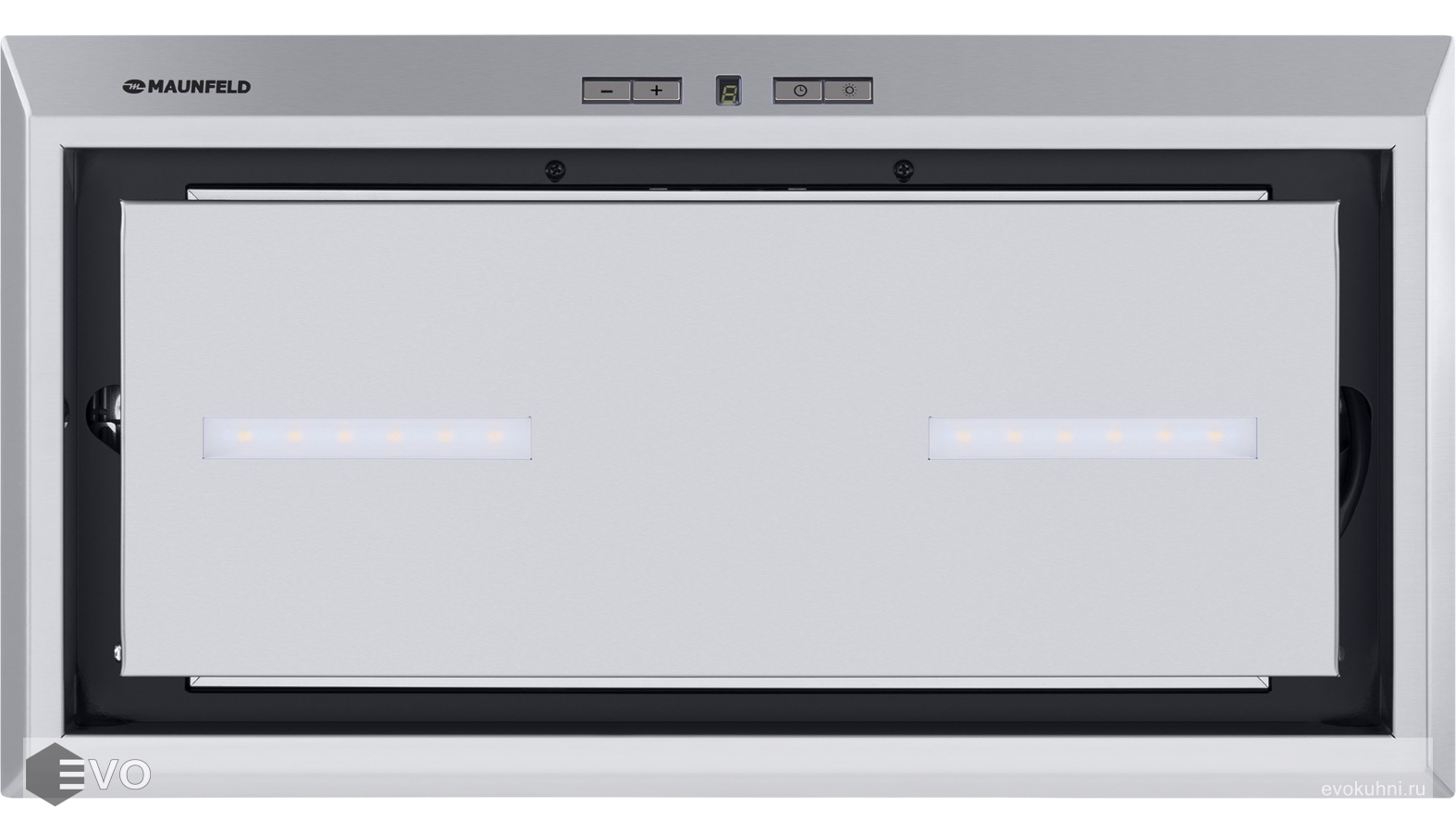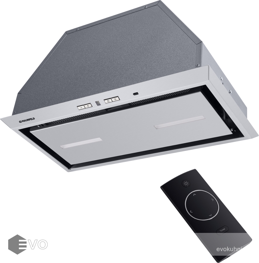 Полновстраиваемая вытяжка MAUNFELD Urania 53 нержавеющая сталь – встраиваемая кухонная вытяжка шириной 54 см идеально подходит для кухни очень большой площади (50 кв.м). Модель встраивается в навесной шкаф над поверхностью плиты. Работает в двух режимах – отвода (при подключении к системе вентиляции) и рециркуляции (при использовании сменного угольного фильтра).