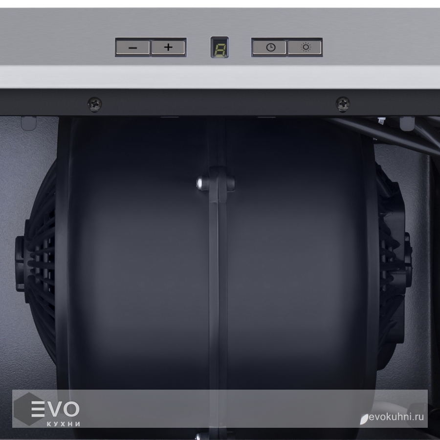 Кнопочное управление с дисплеем располагается на фасаде. Можно включить: одну из 4-х скоростей, таймер, свет. Пульт дистанционного управления идет в комплекте к этой модели.