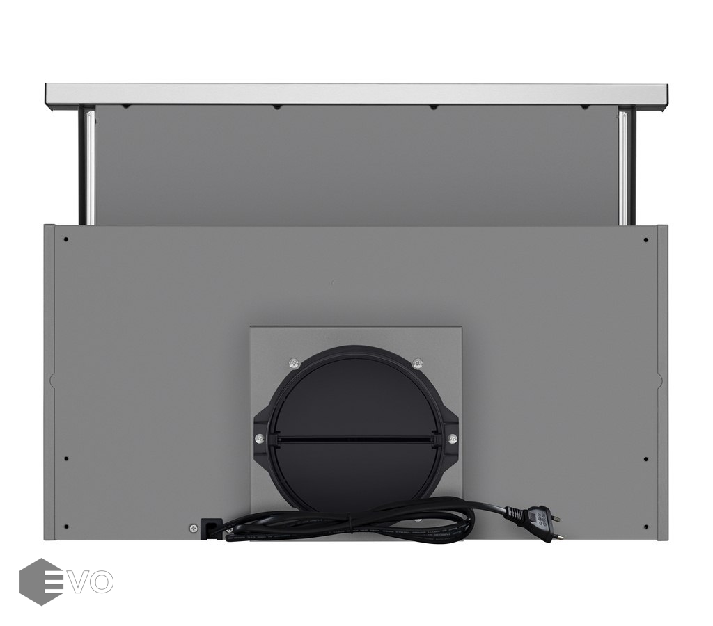 Вытяжка сделана из матированной нержавеющей стали. На основной рабочей и выдвижной панели находятся многослойные жироулавливающие фильтры, выполненные из алюминия. Они легко вынимаются и полностью разбираются, что сильно упрощает их чистку. Управление вытяжкой осуществляется двумя клавишными переключателями, скрытых в торце рабочей панели. Вы можете выбрать одну из 2-х скоростей вентилятора и включить освещение.