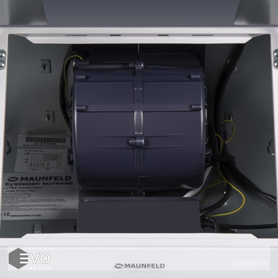 Наклонная вытяжка MAUNFELD York 60 белый – наклонная вытяжка шириной 60 см идеально впишется в интерьер большой кухни (до 25 кв.м). Монтируется на стену над варочной поверхностью и может работать в двух режимах: отвода (при подключении к системе общедомовой вентиляции) и рециркуляции (требуется использование сменного угольного фильтра). Сенсорный дисплей располагается над откидной панелью. Вы можете выбрать одну из 3-х скоростей, активировать таймер отключения вытяжки (на 5 мин) и включить свет.
