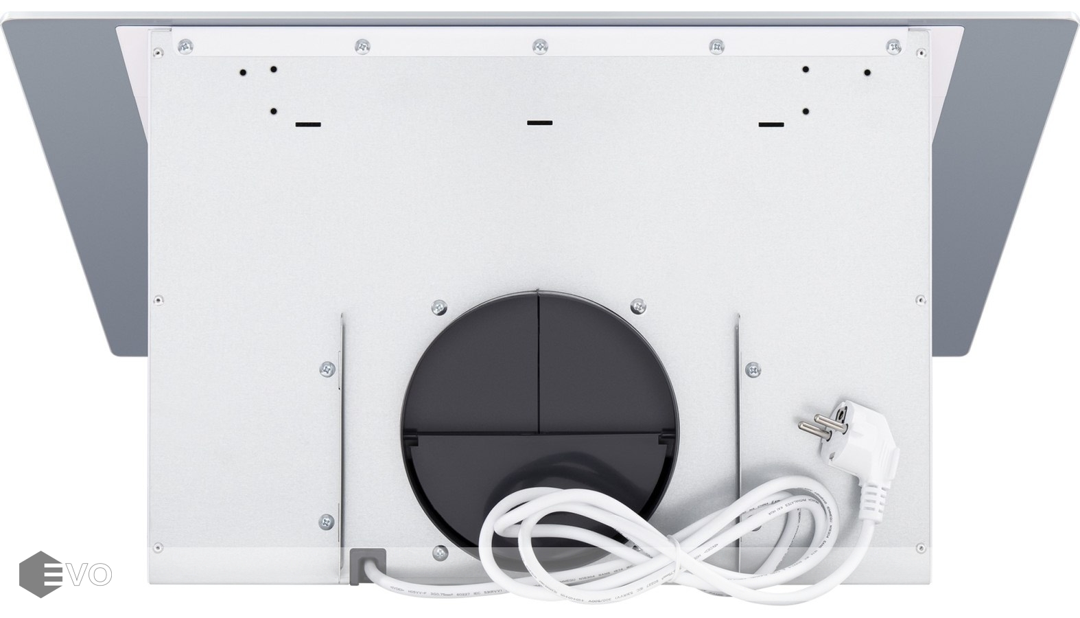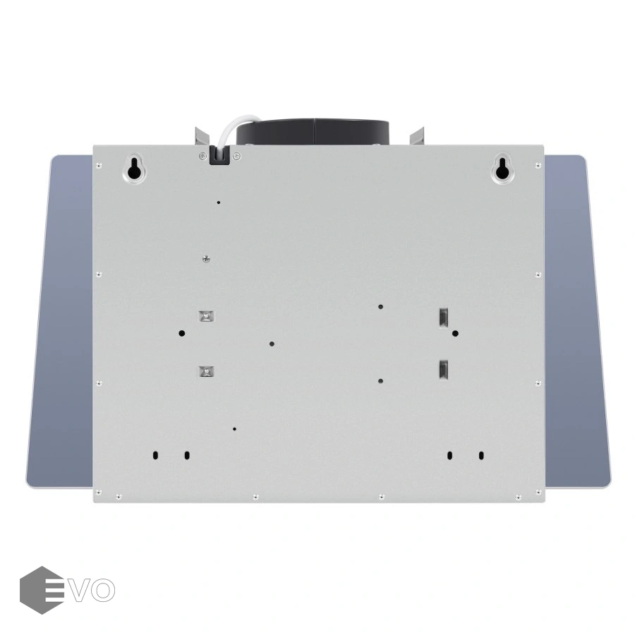 Корпус из нержавеющей стали с покрытием белого цвета удачно сочетается с фасадом, выполненным из закаленного стекла. Откидная панель расположена по центру фасада и скрывается металлический жироулавливающий фильтр, который легко вынимается и полностью разбирается для чистки. В данной модели реализовано периметральное втягивание загрязненного воздуха.