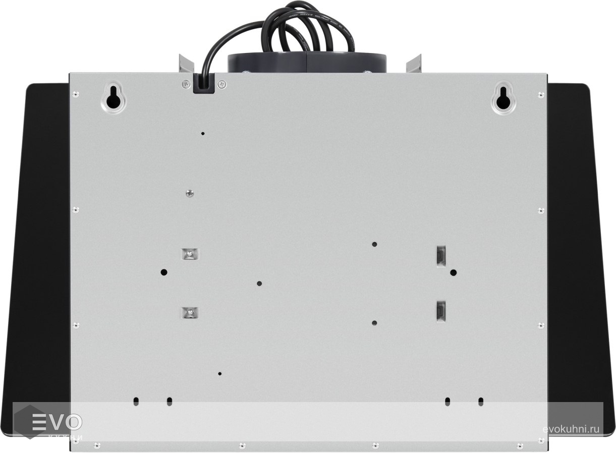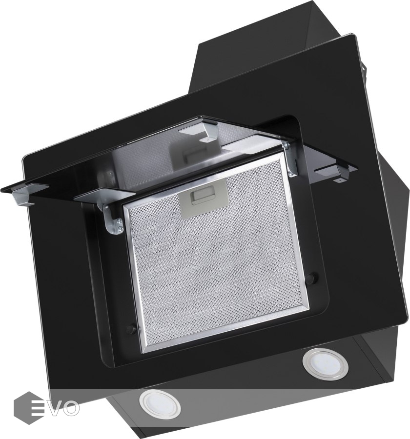 Корпус из нержавеющей стали с покрытием черного цвета удачно сочетается с фасадом, выполненным из закаленного стекла. Откидная панель расположена по центру фасада и скрывается металлический жироулавливающий фильтр, который легко вынимается и полностью разбирается для чистки. В данной модели реализовано периметральное втягивание загрязненного воздуха.