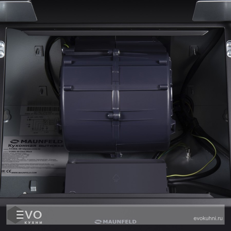 Наклонная вытяжка MAUNFELD York 60 черный – наклонная вытяжка шириной 60 см идеально впишется в интерьер большой кухни (до 25 кв.м). Монтируется на стену над варочной поверхностью и может работать в двух режимах: отвода (при подключении к системе общедомовой вентиляции) и рециркуляции (требуется использование сменного угольного фильтра). Сенсорный дисплей располагается над откидной панелью. Вы можете выбрать одну из 3-х скоростей, активировать таймер отключения вытяжки (на 5 мин) и включить свет.