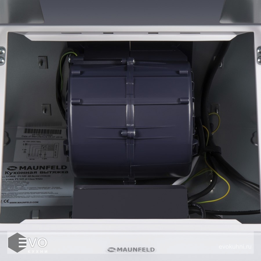 Наклонная вытяжка MAUNFELD York Push 50 белый – наклонная вытяжка шириной 50 см идеально впишется в интерьер кухни до 25 кв.м. Монтируется на стену над варочной поверхностью и может работать в двух режимах: отвода (при подключении к системе общедомовой вентиляции) и рециркуляции (требуется использование сменного угольного фильтра). Кнопочное управление, расположенное над откидной панелью, позволяет выбрать одну из 3-х скоростей вентилятора и включить освещение.