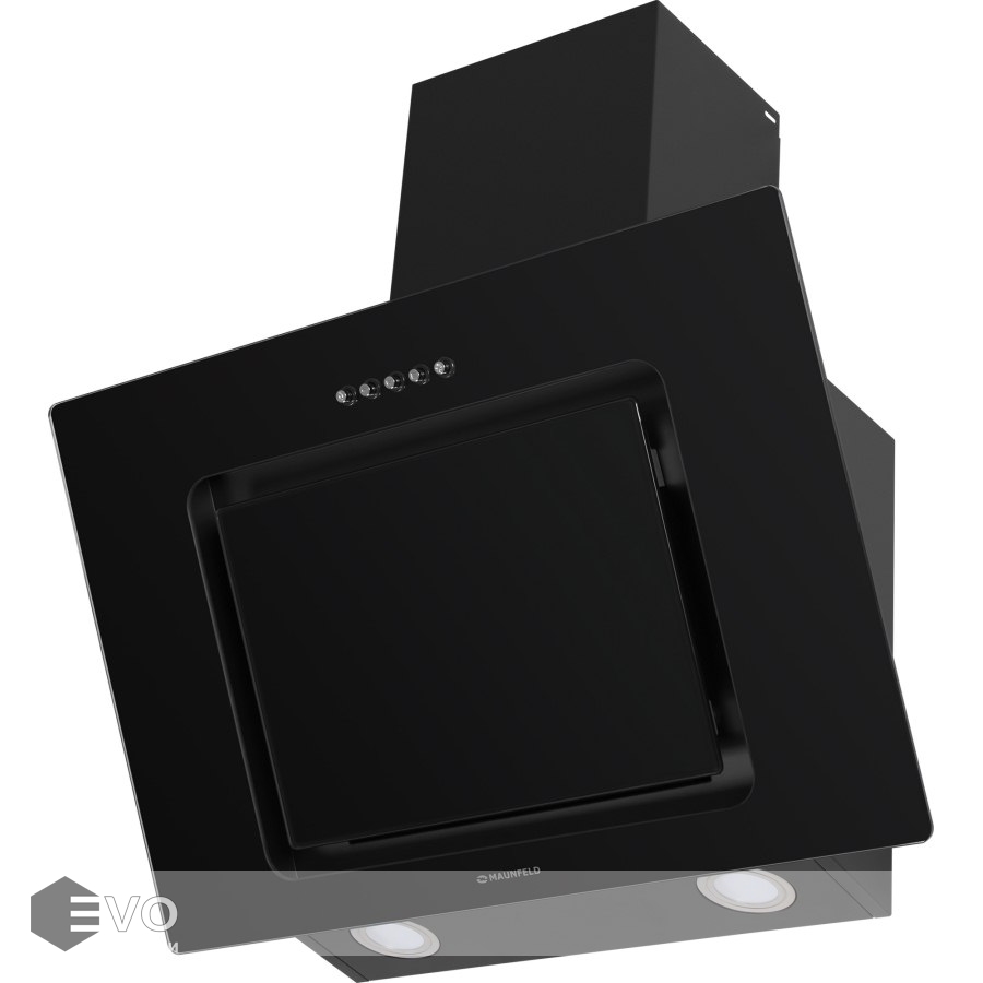 Наклонная вытяжка MAUNFELD York Push 60 черный – наклонная вытяжка шириной 60 см идеально впишется в интерьер кухни до 25 кв.м. Монтируется на стену над варочной поверхностью и может работать в двух режимах: отвода (при подключении к системе общедомовой вентиляции) и рециркуляции (требуется использование сменного угольного фильтра). Кнопочное управление, расположенное над откидной панелью, позволяет выбрать одну из 3-х скоростей вентилятора и включить освещение.