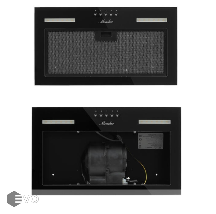 Вытяжка полновстраиваемая Monsher INDIGA 55 B способна работать в режимах отвода и циркуляции воздуха. Благодаря производительности 650 м³/ч достигается высокая эффективность очистки. Данная модель оснащена тремя скоростными режимами. Выбор необходимых параметров осуществляется с помощью кнопок.
