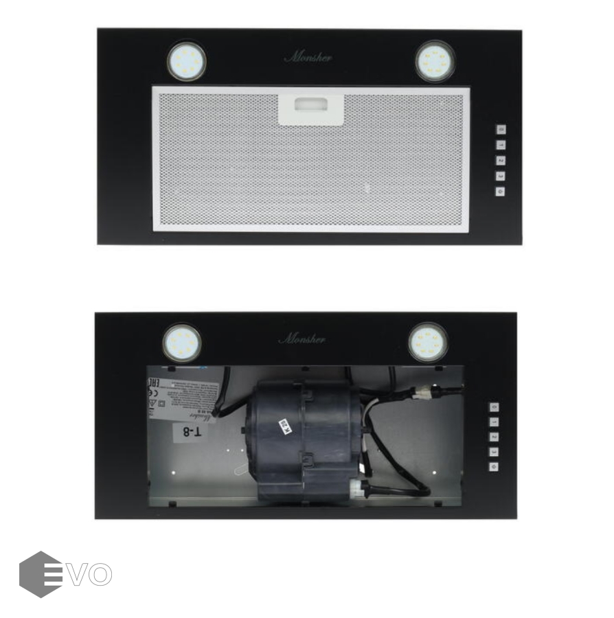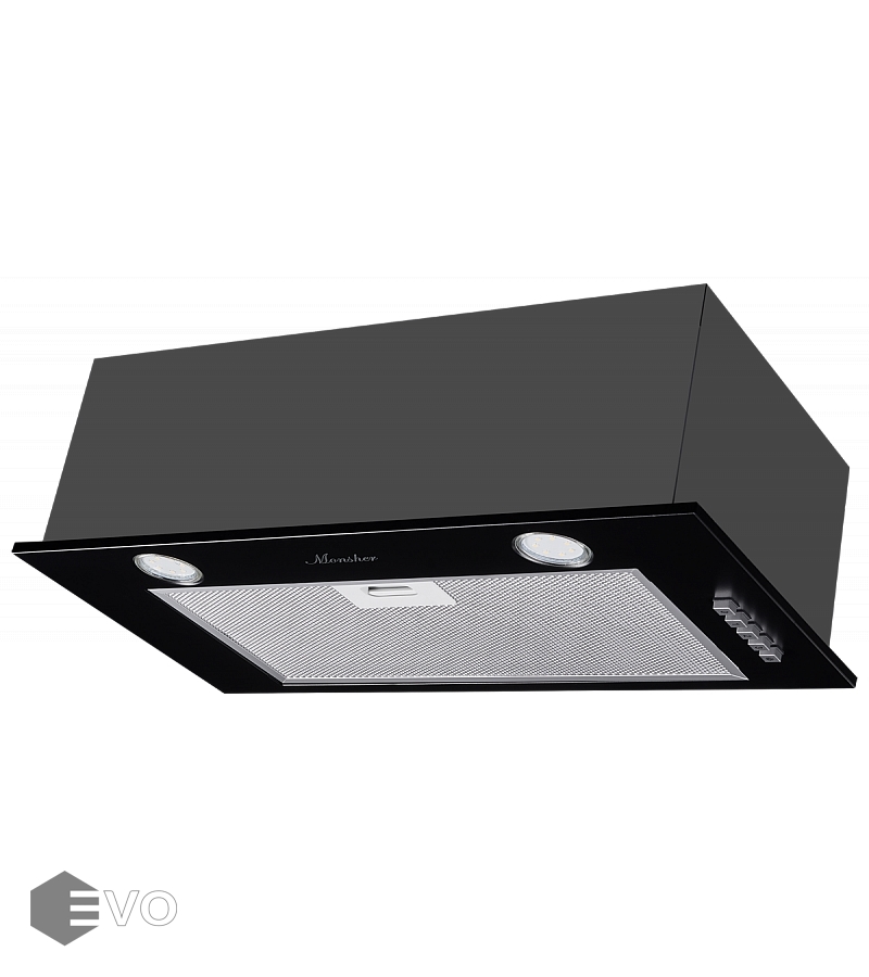 Вытяжка полновстраиваемая Monsher INNA 55 B обладает черным корпусом, компактной конструкцией, которая позволяет спрятать установку в шкаф, и тем самым не будет занимать много пространства на кухне. Модель будет отличным вариантом для малогабаритных помещений, а ее производительность в 650 м³/ч легко и быстро будет избавлять от дыма во время готовки.