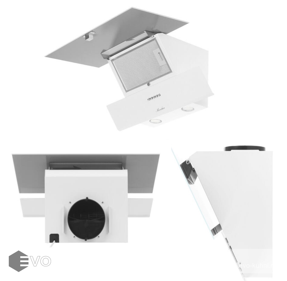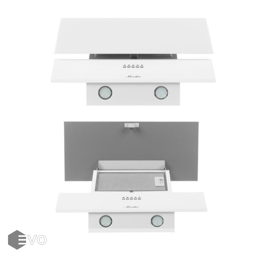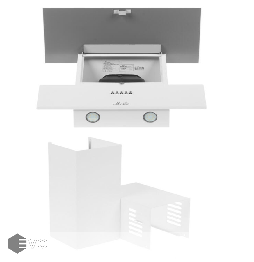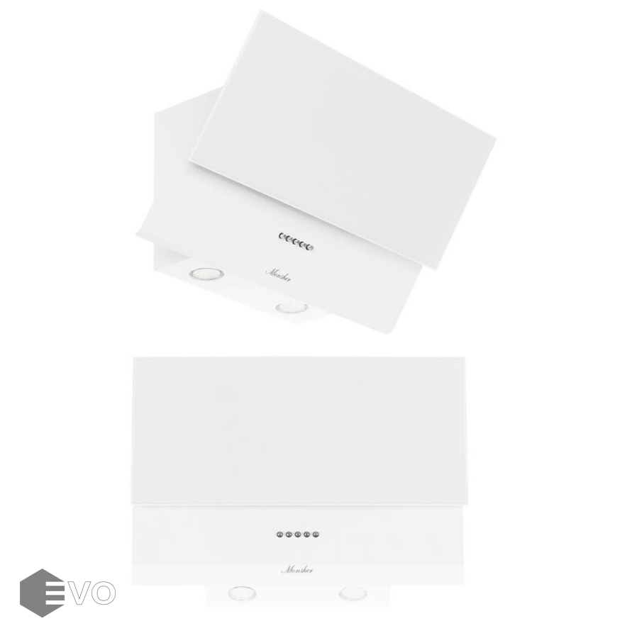 Вытяжка наклонная Monsher KVAZI 60 W облачена в привлекательный белый корпус. В основе функционирования прибора – мотор мощностью 150 Вт. С его использованием вытяжка способна развивать производительность до 650 м³/ч. Работать она умеет в режимах отведения и циркуляции воздуха. Управлять ими можно посредством кнопок.