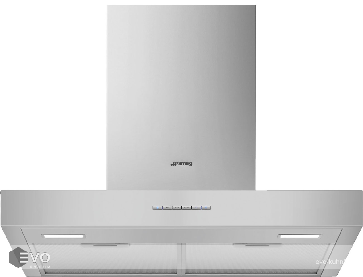 Т-образная вытяжка Smeg KBT700XE – настенная вытяжка в цвете нержавеющая сталь, имеет электронное управление с помощью кнопок и LED-подсветку двумя лампами. Предусмотрен интенсивный режим, когда вытяжка работает на максимальной скорости, чтобы ускорить удаление даже самых стойких запахов.
