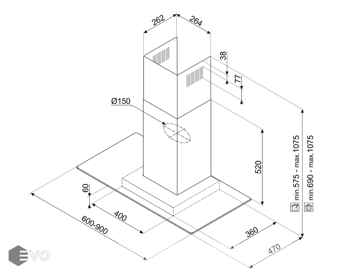 - Высота, мм: 575-1075