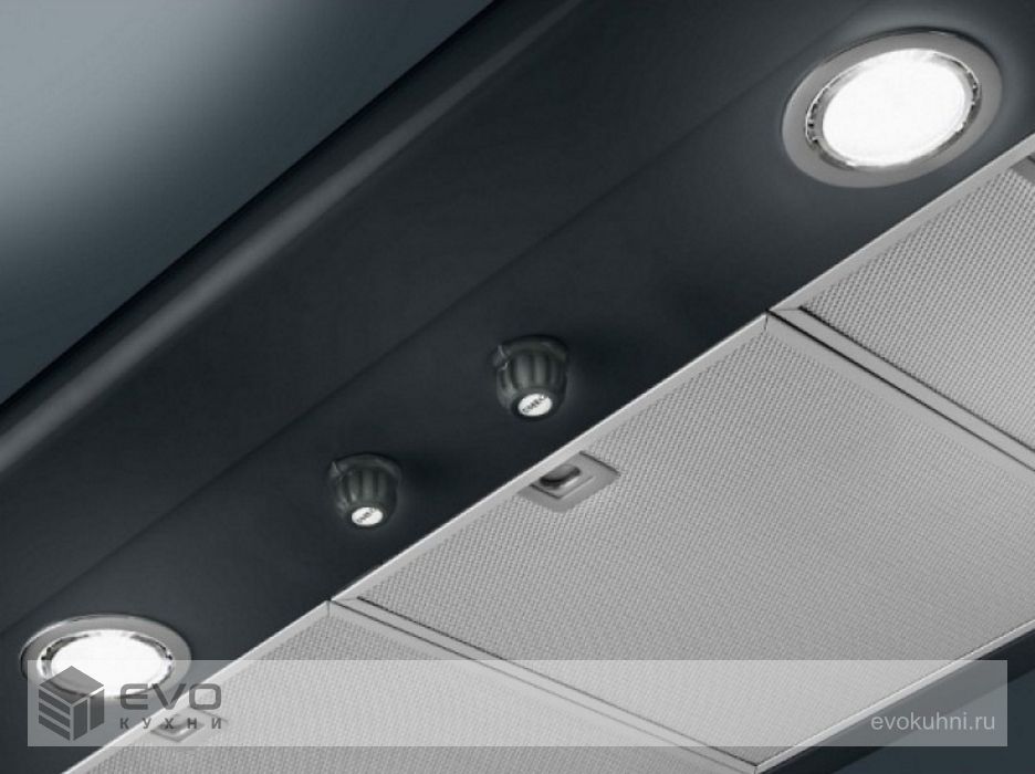 Выбор скорости всасывания и включение освещения производится при помощи механических поворотных переключателей, расположенных на фронтальной части корпуса. Два алюминиевых жироулавливающих фильтра легко снимаются, они пригодны для мытья в посудомоечной машине. Дополнительно заказываются латунные боковые рейлинги и логотип, закрывающие крепежные отверстия. Для работы в режиме рециркуляции необходимо приобрести угольный фильтр.