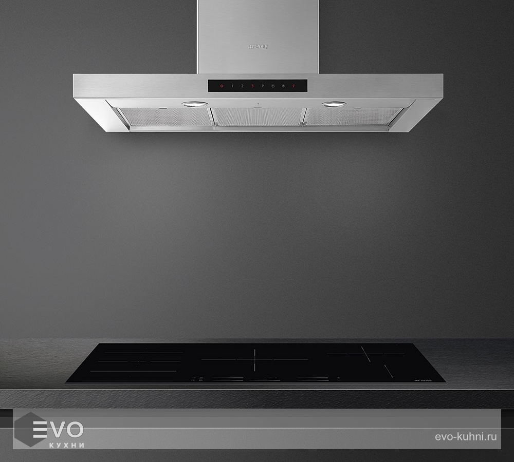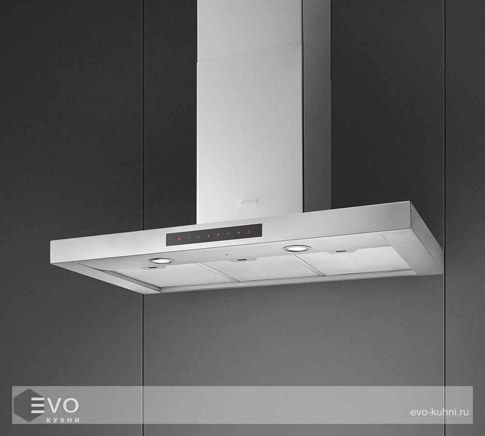Т-образная вытяжка Smeg KICT90BL – настенная вытяжка в цвете нержавеющая сталь, имеет электронное управление с помощью кнопок и LED-подсветку двумя лампами. Предусмотрен интенсивный режим, когда вытяжка работает на максимальной скорости, чтобы ускорить удаление даже самых стойких запахов.