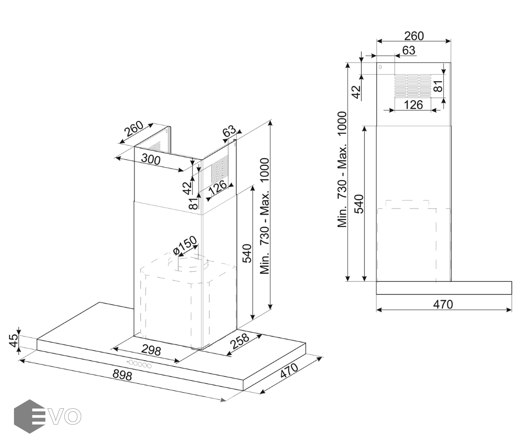 • Высота установки над электрическими варочными поверхностями, мм: 500