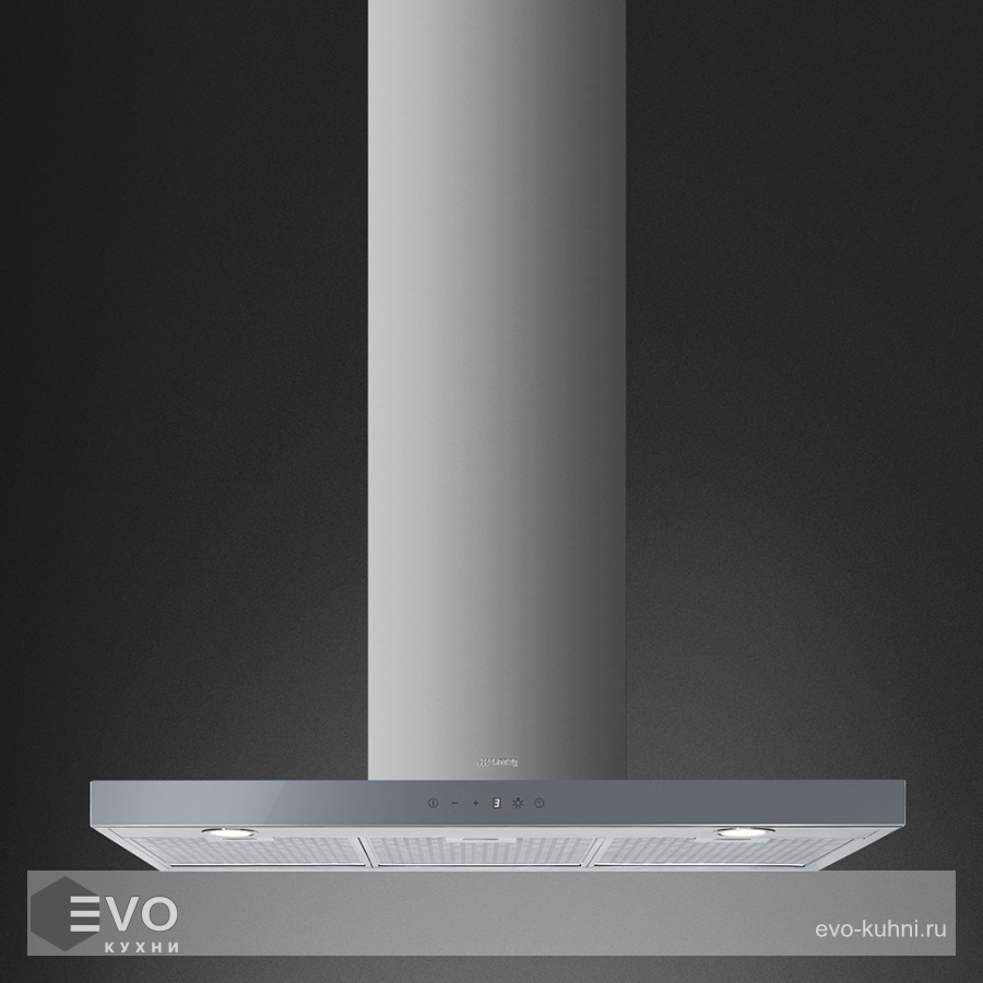 Т-образная вытяжка Smeg KS905BXE2 – настенная вытяжка шириной 90 см., имеет управление Touch Control и LED дисплей с белыми индикаторами. Предусмотрено 3 скорости и интенсивный режим, позволяющий включить устройство на максимальную мощность, чтобы ускорить удаление запахов.