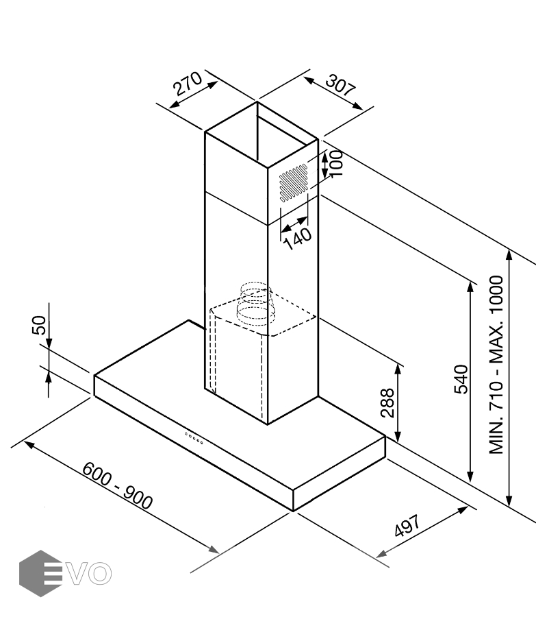 • Высота установки над электрическими варочными поверхностями, мм: 650