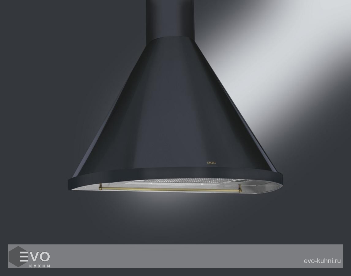 Купольная вытяжка Smeg KSE86AOE – настенная вытяжка цвета «антрацит». Техника быстро и безупречно очистит внутреннее пространство кухни от запахов благодаря режимам отвода или циркуляции. Купольная модель выделяется благодаря ретро-дизайну, корпусу из нержавеющей стали и стильной латунной окантовке.