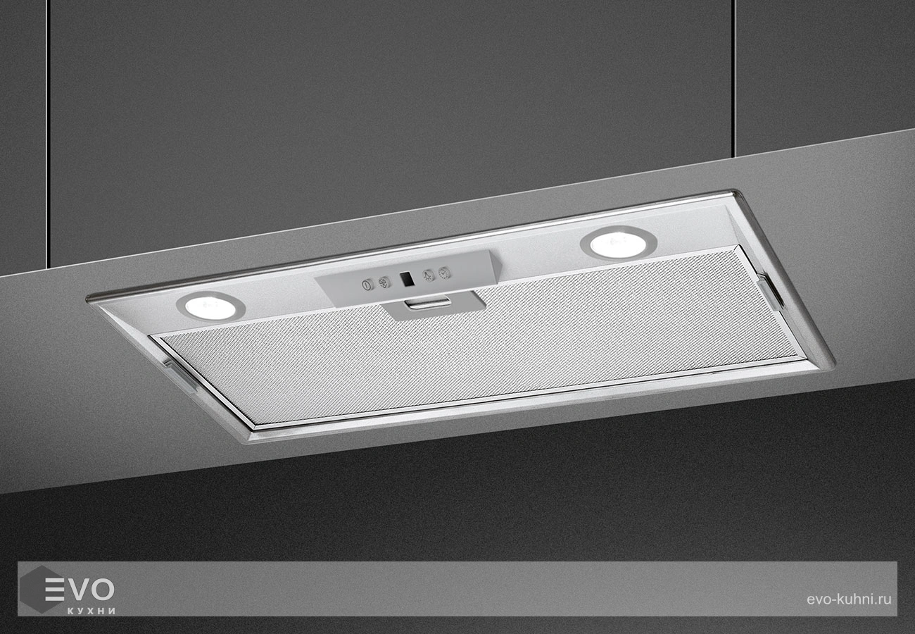 Полновстраиваемая вытяжка Smeg KSEG5XSA – модель встраивается в подвесной шкаф над варочной панелью с тремя или четырьмя конфорками. Вытяжка изготовлена из высококачественной нержавеющей стали. На передней части находится кнопочная панель управления.