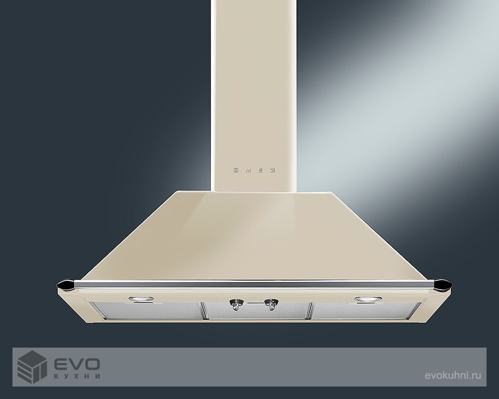 Купольная вытяжка Smeg KT90PE – настенная вытяжка имеет три скорости работы, которые позволяют ей подобрать оптимальный режим очищения воздуха в помещении, а интенсивная ступень обеспечивает быструю вентиляцию сильно задымленного воздуха. Для выбора параметров работы служат стальные поворотные переключатели.