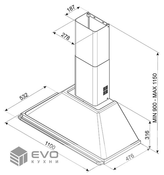 - Высота установки над электрическими варочными поверхностями, мм: 650