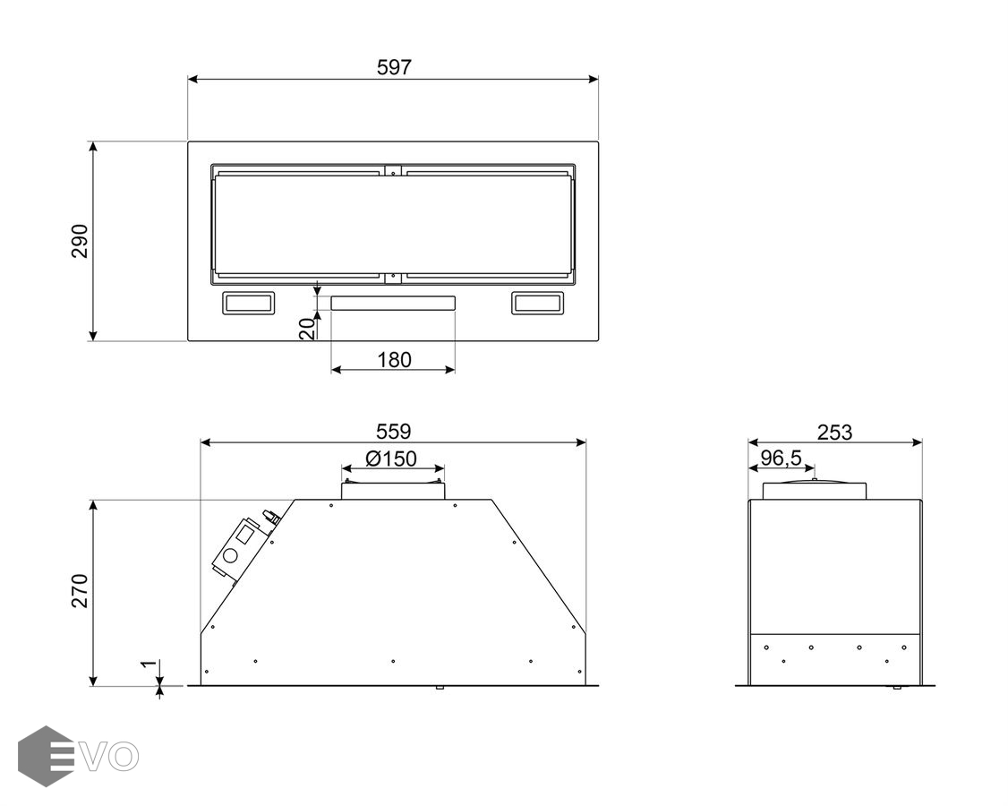 Тип вытяжки : | Встраиваемая (в шкаф) |