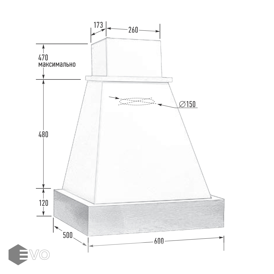 - Диаметр воздуховода, мм: 150