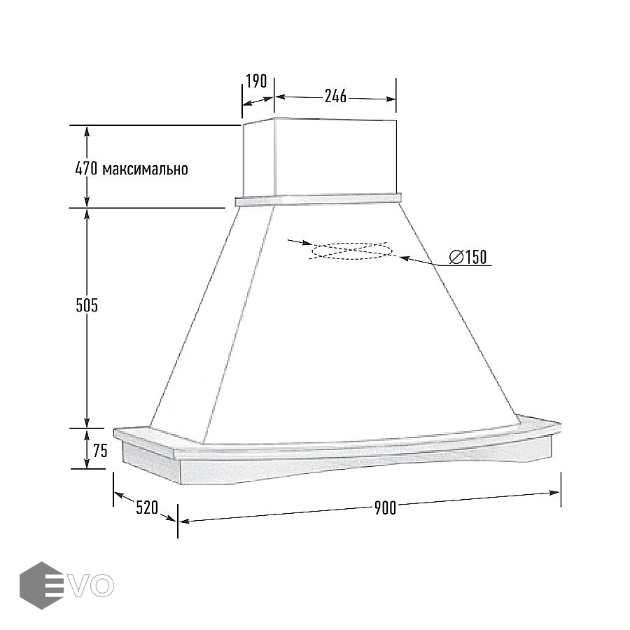 | Тип вытяжки : | Традиционная (пристенная) |