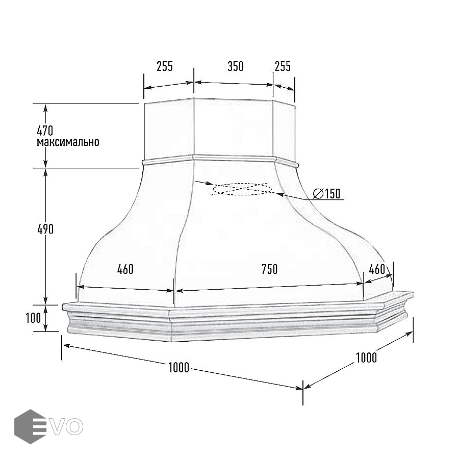 - Диаметр воздуховода, мм: 150