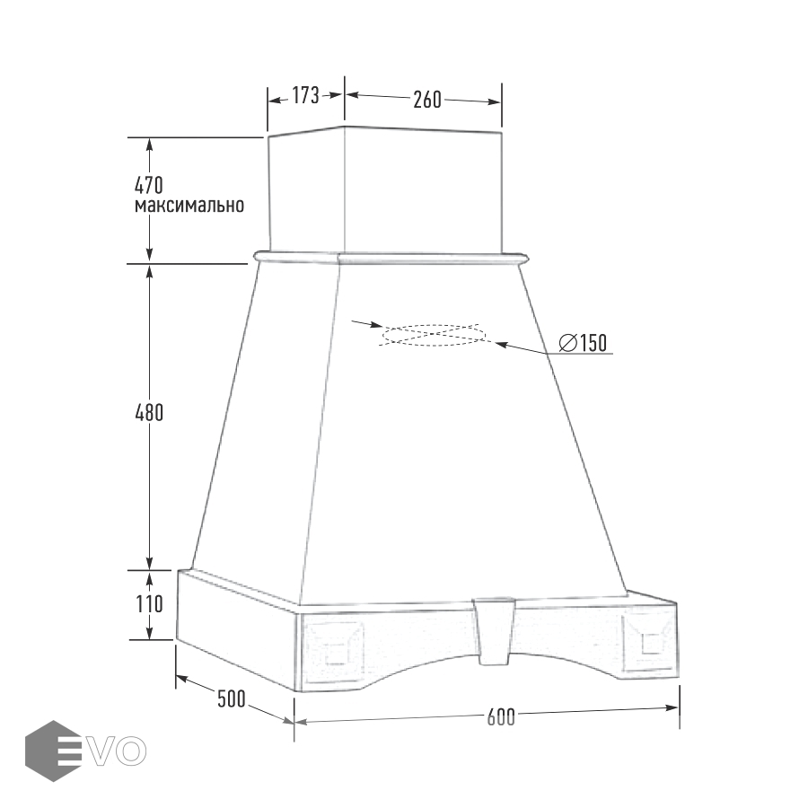 • Высота установки над электрическими варочными поверхностями, мм: 650