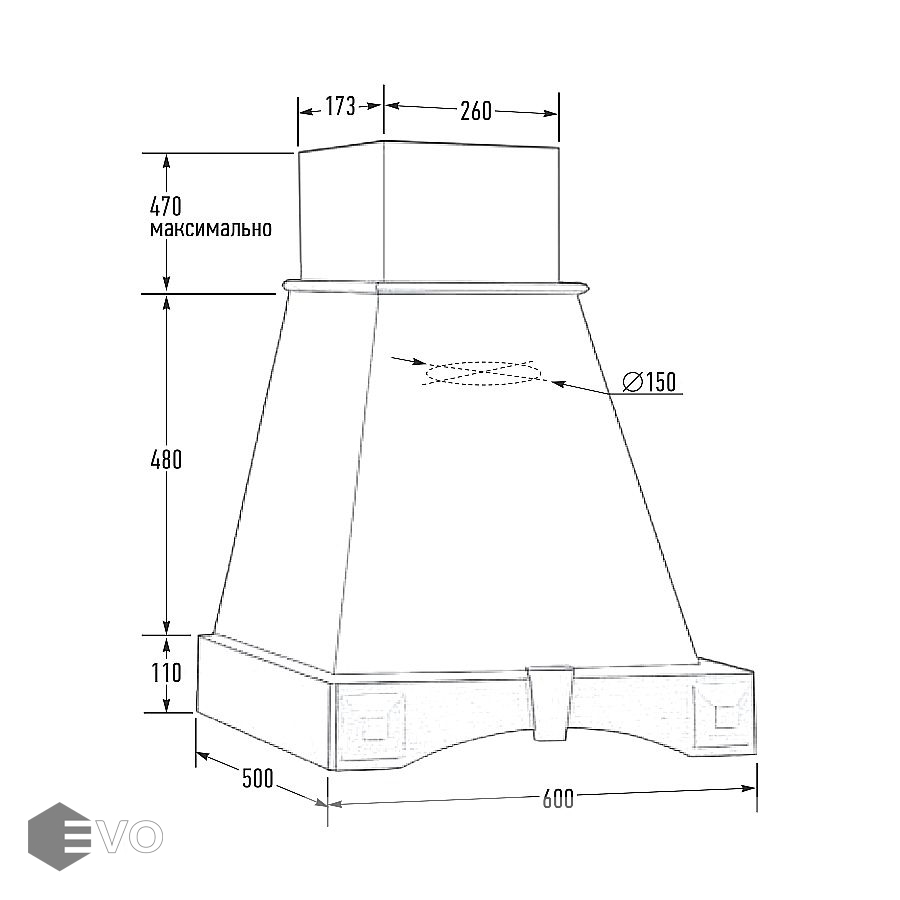• Диаметр воздуховода, мм: 150