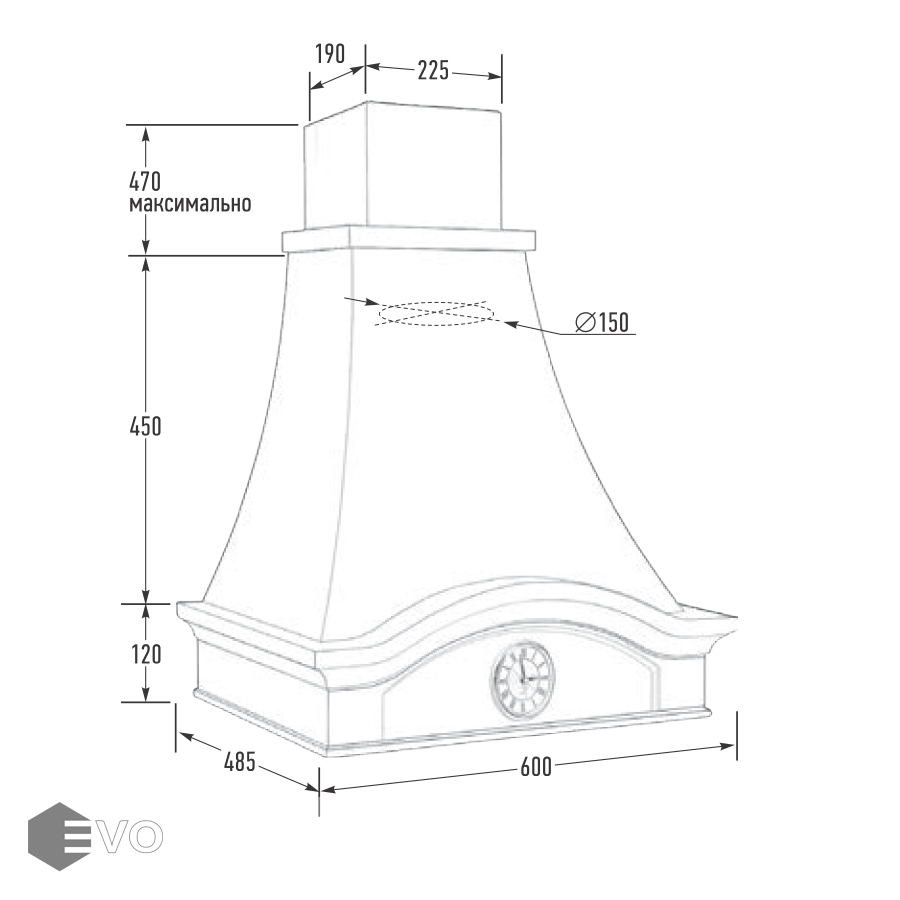 • Диаметр воздуховода, мм: 150
