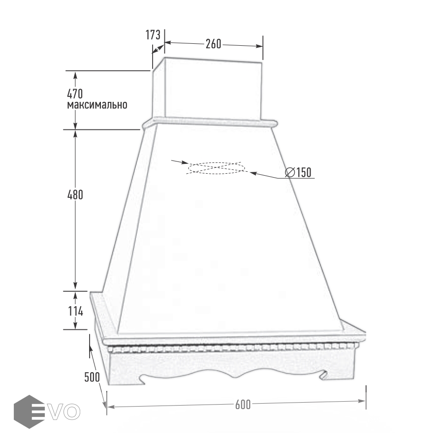 Купольная вытяжка Viaona Cappe Изабелла 60 с ВМ-510/52 new faber – трехскоростная вытяжка настенного монтажа в классическом дизайне в стиле кантри и предназначена для настенного монтажа. Модель работает в режимах отвода и циркуляции, поэтому загрязнения удаляются из комнаты и перенаправляются в воздуховод, при этом можно очистить воздух и использовать повторно за счет возвращения его в помещение.