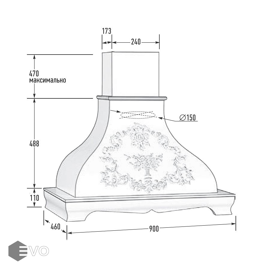 Купольная вытяжка Viaona Cappe Медея 90 ППУ с декором inca 900 бежевый муар – вытяжка выполнена в стиле кантри и предназначена для настенного монтажа, работает в режимах отвода и циркуляции, поэтому загрязнения удаляются из комнаты и перенаправляются в воздуховод, при этом можно очистить воздух и использовать повторно за счет возвращения его в помещение. Купол изготовлен из пенополиуретана который обладает биологической нейтральностью и характеризуется повышенной прочностью, плотностью, водостойкостью.