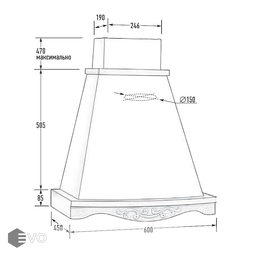 - Высота установки над электрическими варочными поверхностями, мм: 650