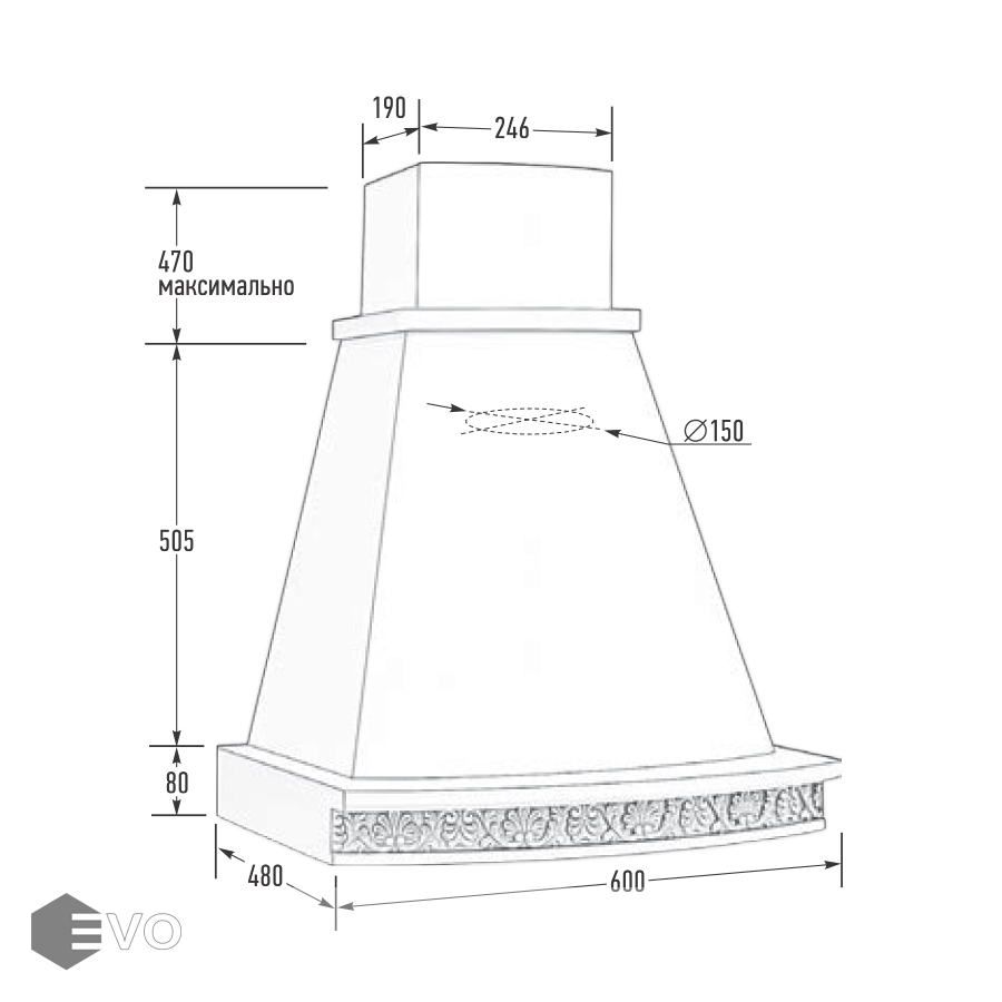 - Диаметр воздуховода, мм: 150