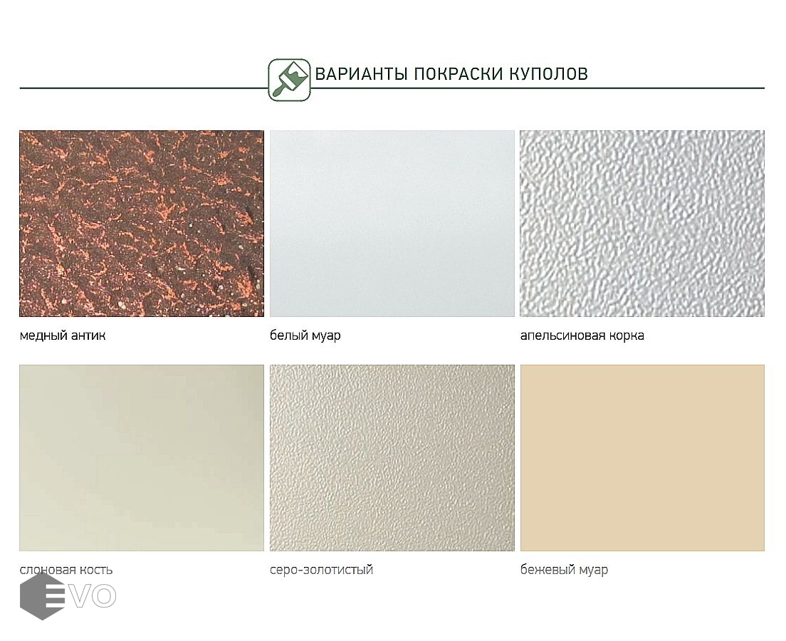 Покраска купола в цвет: белый с золотом или серебром + 500 руб./ по RAL плюс 1000 руб.