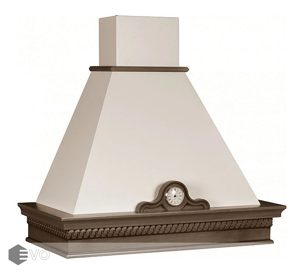 Купольная вытяжка Viaona Cappe Руджери 90 с часами inca 550 слоновая кость – вытяжка выполнена в стиле кантри и предназначена для настенного монтажа, работает в режимах отвода и циркуляции, поэтому загрязнения удаляются из комнаты и перенаправляются в воздуховод, при этом можно очистить воздух и использовать повторно за счет возвращения его в помещение. Купол изготовлен из металла.