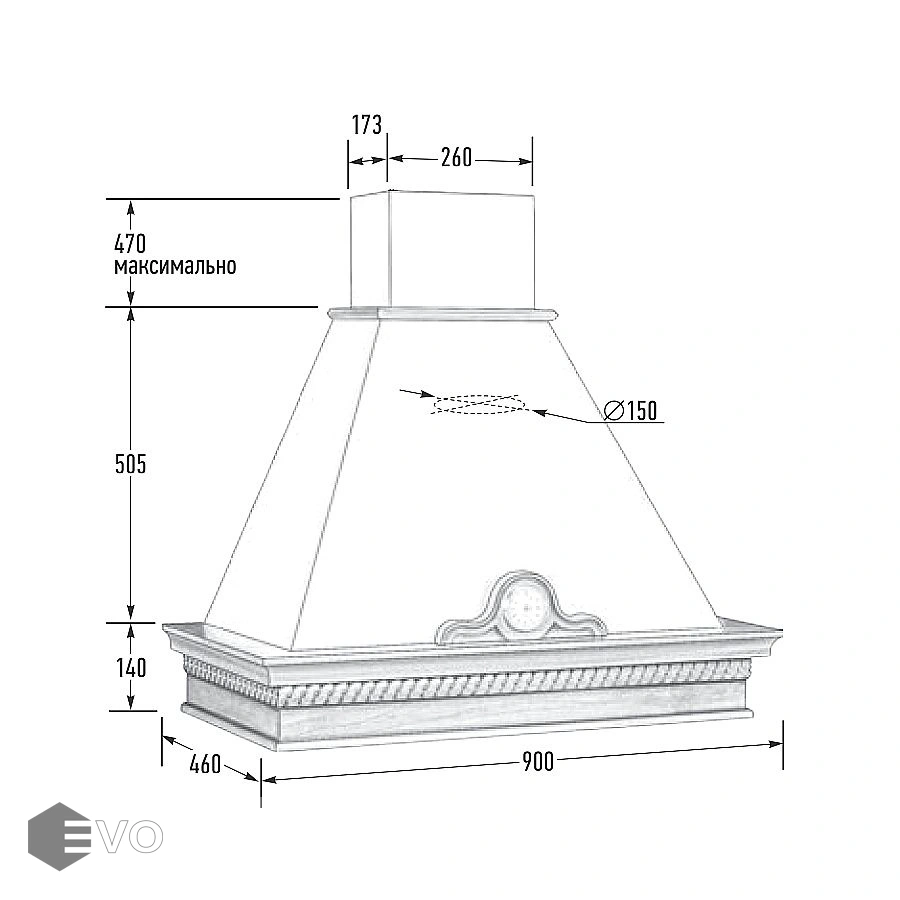 - Диаметр воздуховода, мм: 150