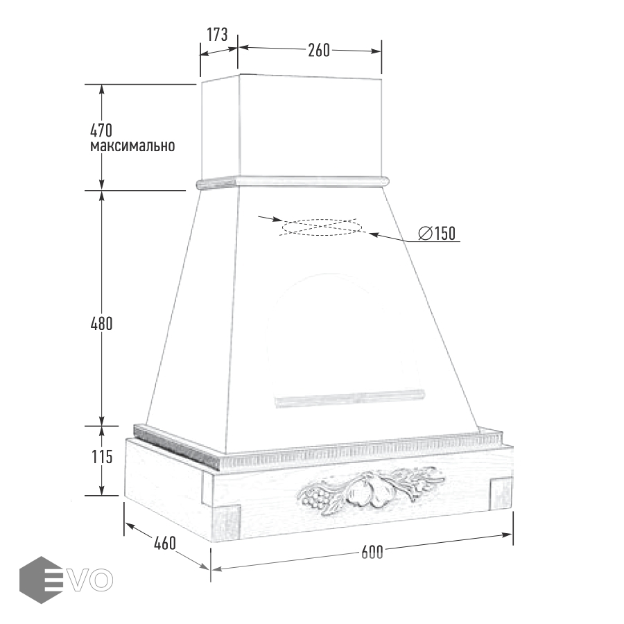 Купольная вытяжка Viaona Cappe Сильвия 60 inca 900 апельсиновая корка – вытяжка выполнена в стиле кантри и предназначена для настенного монтажа, работает в режимах отвода и циркуляции, поэтому загрязнения удаляются из комнаты и перенаправляются в воздуховод, при этом можно очистить воздух и использовать повторно за счет возвращения его в помещение.  Купол изготовлен из металла.