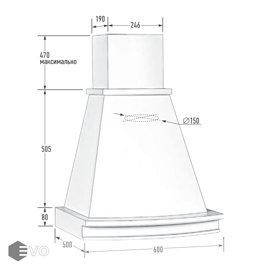 - Высота установки над электрическими варочными поверхностями, мм: 650