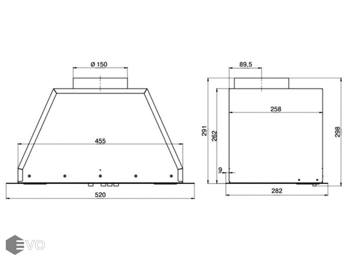 - Размеры вытяжки (ШхВхГ) 520х298х282 мм