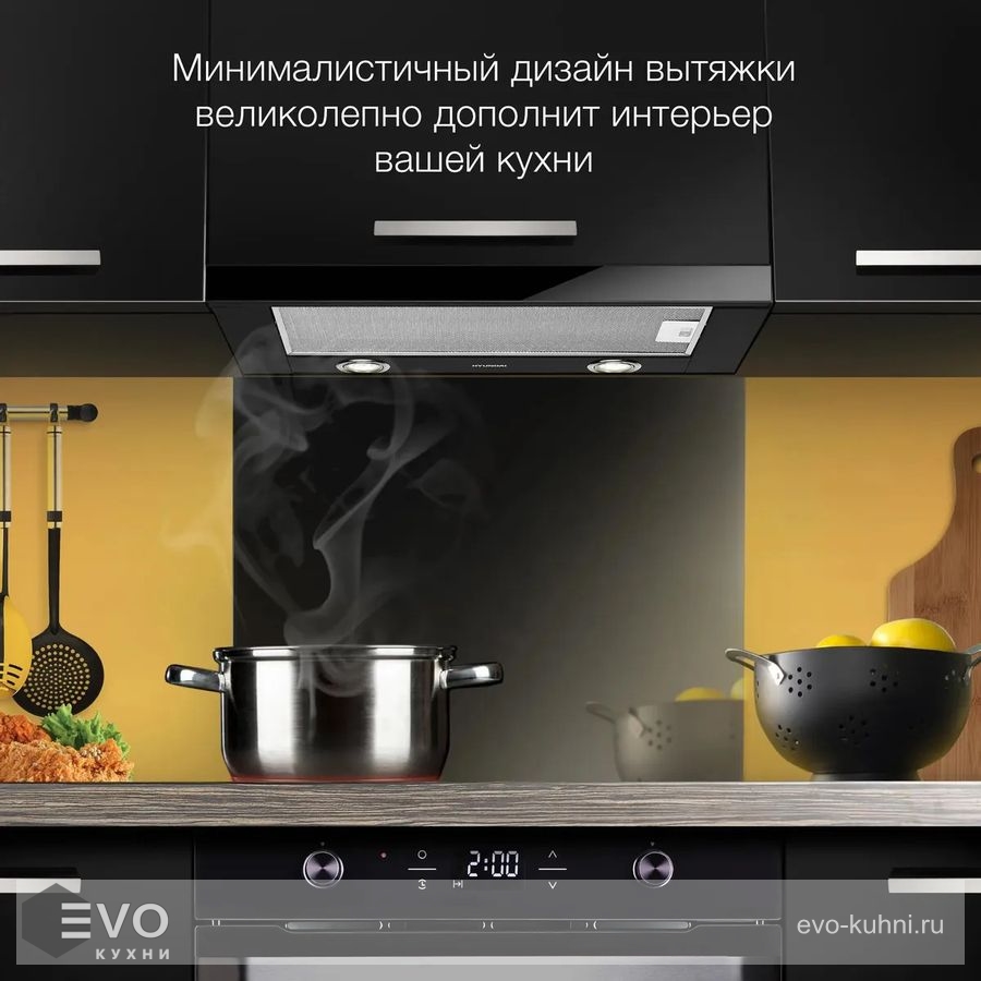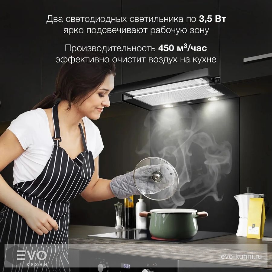 - Размеры вытяжки (ШхВхГ) 600х199х307 мм