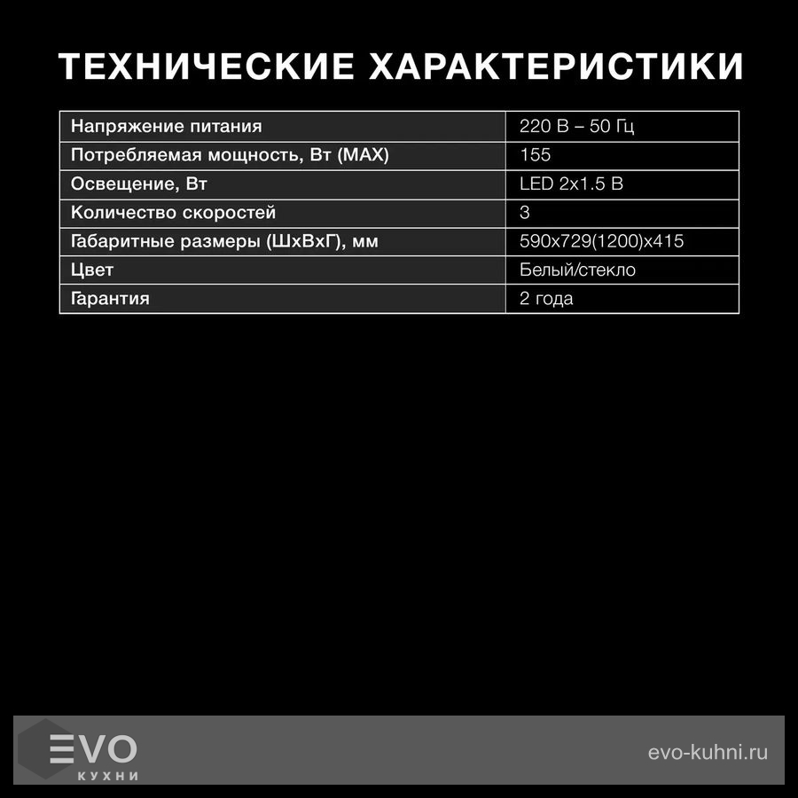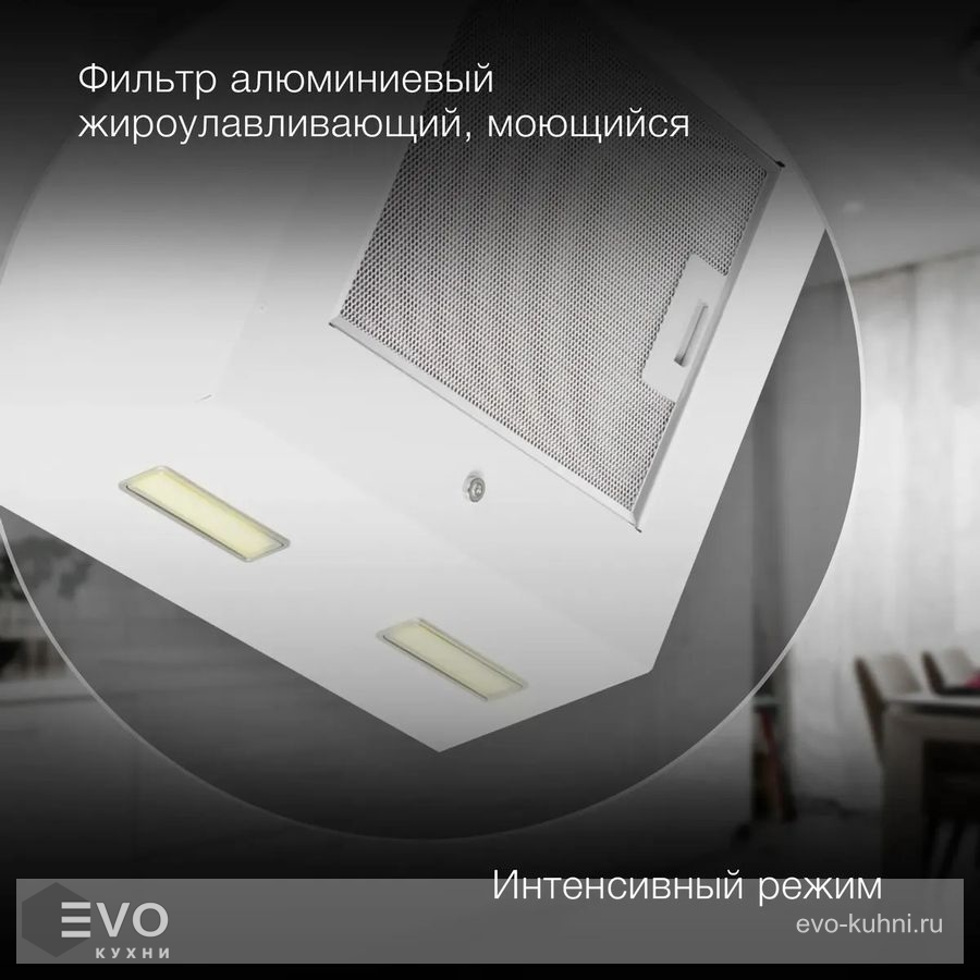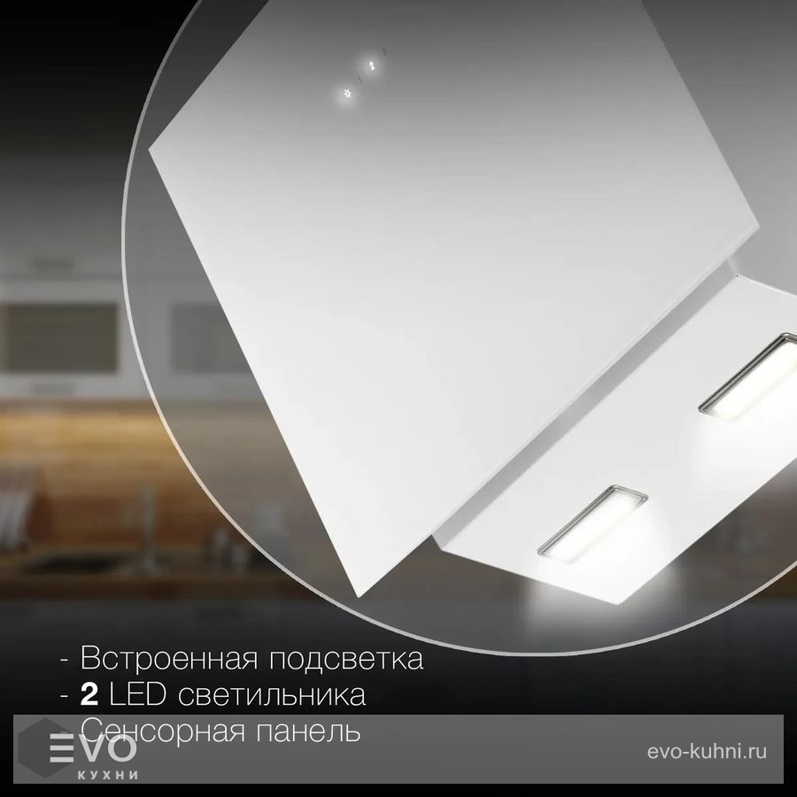 Светодиодная подсветка обеспечивает комфортное освещение рабочей зоны. Также ее можно использовать для дополнительного освещения кухни. Сенсорная панель управления расположена на лицевой стороне – легким касанием можно включить подсветку, установить одну из 3-х скоростей работы вентилятора (максимальный воздухообмен до 750 м3/час), установить таймер или запустить функцию «Автоматического проветривания».