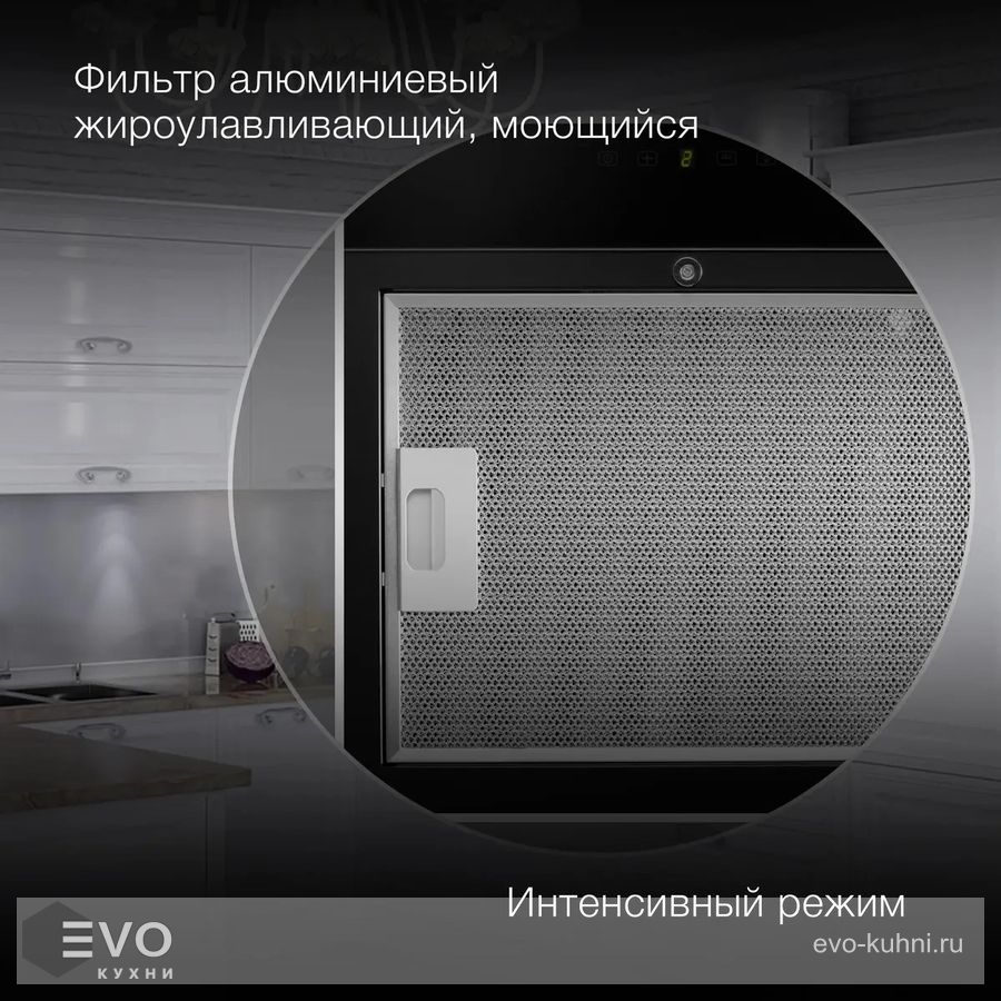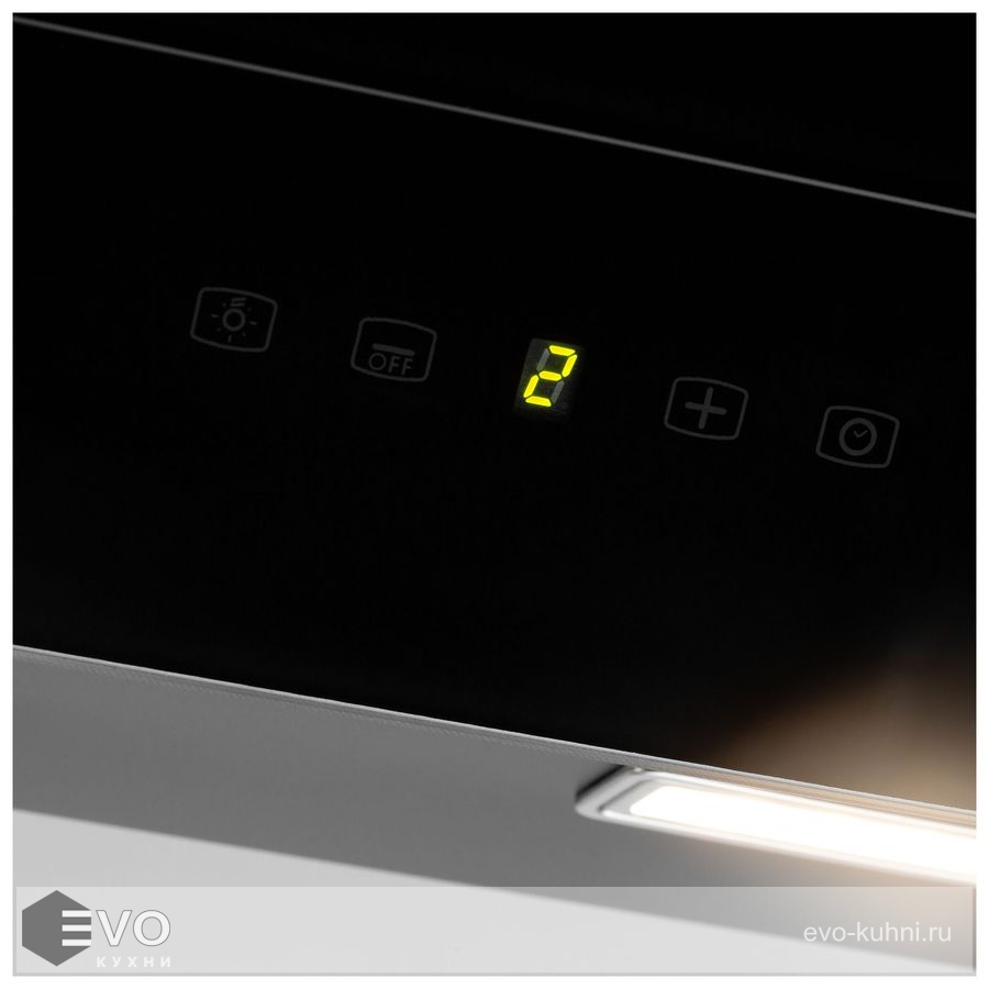 Переключение режимов вытяжки осуществляется с помощью сенсорных кнопок и яркого жидкокристаллического дисплея.