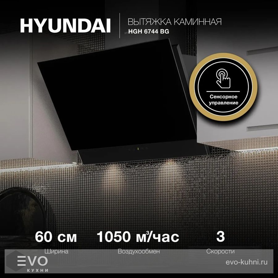 Компактная и эргономичная вытяжка Hyundai HGH 6744 BG с настенным креплением станет помощницей хозяйки на любой кухне и в считанные минуты очистит воздух от неприятных запахов. Прибор обеспечивает отвод и циркуляцию воздуха с производительностью до 1050 м3/час. Она возможна благодаря установленным в него 280 Вт мощности. Даже на максимальной интенсивности работы данная модель не производит больше 55 дБ шума.