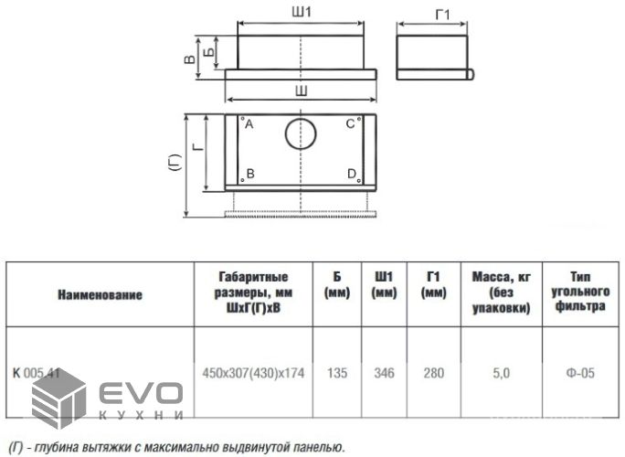 Особенности вытяжки: Выдвижная панель Жировой фильтр